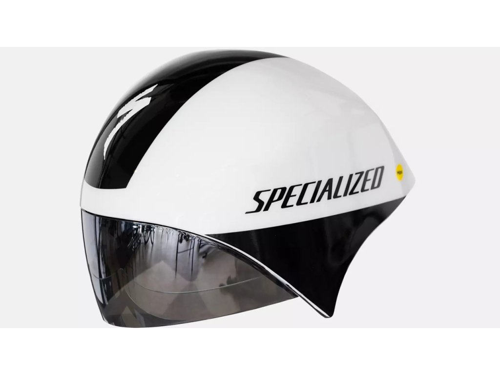 Prilba S-Works TT 5 je vybavená optickým štítom triedy 1 pre nulové skreslenie pri pohľade na cestu, na rozdiel od tradičných prilieb, ktoré sú zvyčajne pokryté priehľadným plastom. Štít má hydrofóbny povlak, ktorý pomáha odvádzať vlhkosť, ak sa v deň pretekov zhorší počasie, a tiež vysoko kvalitnou (EN166) ochranou proti zahmlievaniu.